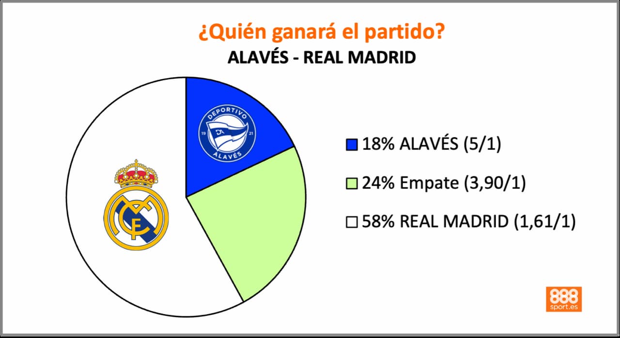 El 58% de los seguidores de 888sport apuesta que el Real Madrid ganará al Alavés