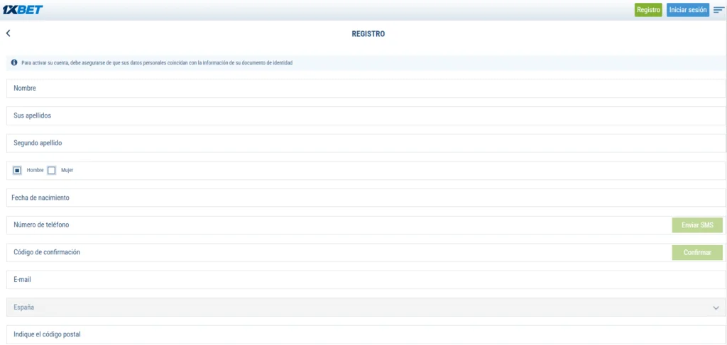 Los pasos para crear una cuenta en 1XBET desde el móvil son los mismos que para hacerlo desde el ordenador, por lo que tendrás que hacer lo siguiente: