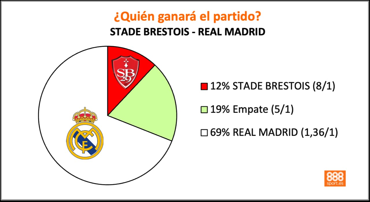 El 69% de los usuarios de 888Sport consideran al Real Madrid como el favorito para su enfrentamiento contra el Brest en la UEFA Champions League. Los datos de las apuestas reflejan un sólido respaldo al equipo blanco, mientras que el canario cuenta con un 12% de probabilidades, según las estadísticas de la casa de apuestas. Además, dicho encuentro se disputa el miércoles (29 de enero de 2025) a las 21:00h.