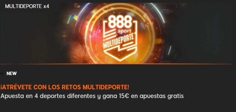 La casa de apuestas 888Sport ha lanzado una promoción llamada Multideporte en la que apuesta y recibe una apuesta gratis de 15€. Además, disfruta de la comodidad de apostar desde la app de 888Sport.