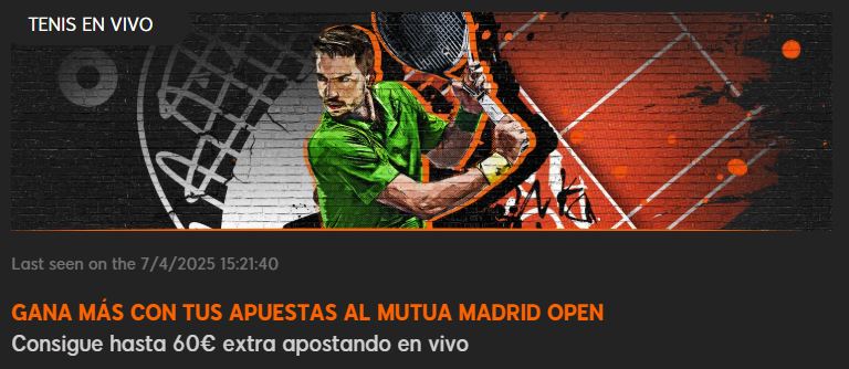 ¡Regístrate hoy mismo, reclama tu bono y aprovecha la promoción «Tenis en Vivo» en el Mutua Madrid Open!