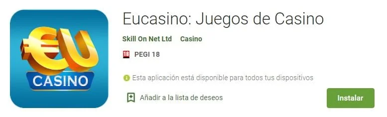 - Dirígete a Google Play y escribe EUcasino en el buscador.