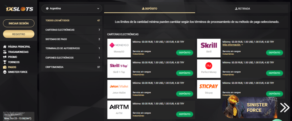 Para aquellos que han llegado hasta aquí, tenemos un grandioso premio, ya que aprenderemos como ingresar dinero dentro de 1xSlots. Para que de esta forma, puedas acceder a los mejores beneficios de todos. Claramente, este es un proceso sumamente simple de realizar y no te tomará más de cinco minutos. Es por eso que te contaremos de forma rápida, todos los pasos que tendrás que llevar a cabo.