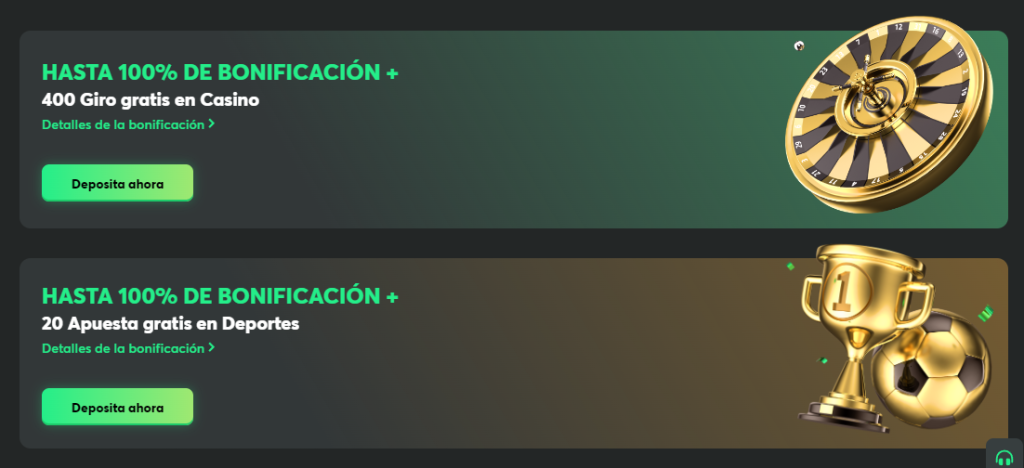 Este bono es uno de los más utilizados por los usuarios ya que representa un gran plus en tu saldo inicial para apostar por primera vez. Lo único que tenes que hacer hacer un primer depósito y vas a recibir un bono del 120% con un tope de 500 USD. Con el segundo depósito, el bono será del 100% y tendrá un tope de 300 USD. Con el tercer depósito, el sitio te va a dar un bono del 150% con un tope de 500 USD. Por último pero no menos importante, el cuarto depósito ofrece un bono del 100% con un límite de 300 USD. ¡Realmente una locura!