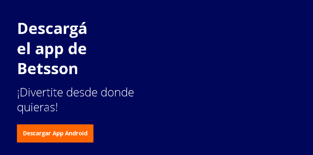 Te invitamos a ver por vos mismo todo sobre la app para android en la página oficial de Betsson. Podrás encontrar los detalles en el menú superior en la sección “APP”.