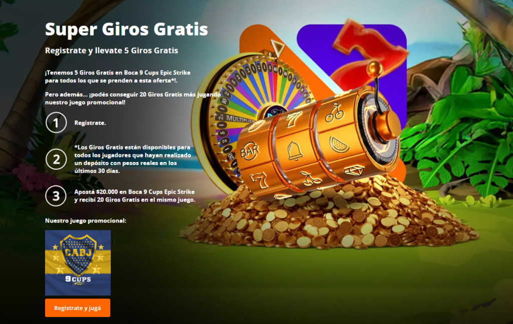 - Apostá $20.000 en Boca 9 Cups Epic Strike y recibí 20 Giros Gratis en el mismo juego.