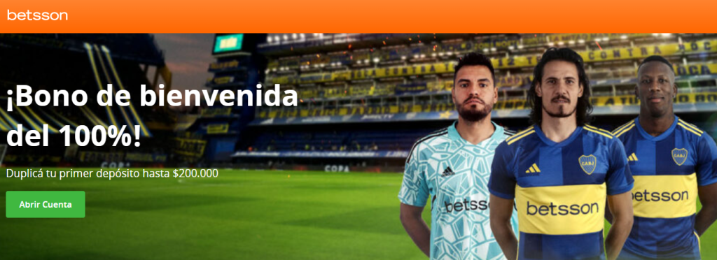 No es ninguna novedad que Betsson es la Casa de Apuestas Deportivas y el Casino Online de mayor prestigio en Argentina a día de hoy. Sponsor de Boca Juniors y de Racing, por ejemplo, es la plataforma líder en el sector. ¡Y con un Bono de Bienvenida a Betsson Argentina increíble! Recibí hasta $350.000 extras al duplicar tu primer depósito junto a los giros gratis y empezá tu recorrido con todo por ganar. ¿Qué estás esperando? Registrá tu cuenta en Betsson y nada ni nadie podrá frenar tu envión.