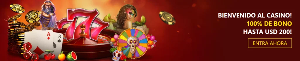 Ahora, para los que buscan la adrenalina más bien en el casino, tienen el Bono de Bienvenida de Casino. Ahí la casa te regala un 100% extra en el primer depósito, hasta 100 USD, y después la siguen con otro 100% en el segundo depósito, otros 100 USD. En total, son 200 dólares para darle al casino como un campeón. El requisito de apuesta es de x25 en juegos de casino seleccionados, en este caso. Como en el Bono Deportes, el mínimo es de 5 dólares. Comenzá ahora, y animate a conocer más del sitio con nuestra reseña!