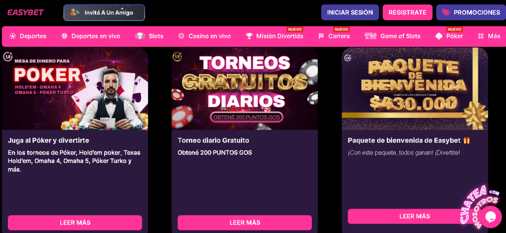 También te recordamos que hay en EasyBet un listado de Preguntas Frecuentes. Allí obtendrás información valiosa sobre diversos aspectos, como tu cuenta, depósitos, retiros, seguridad y más. Para disfrutar de una experiencia completa y satisfactoria.