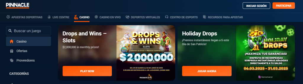 Sí, Pinnacle cuenta con torneos de casino con premios millonarios, Drops & Wins y ofertas especiales por festividades. Estas promociones tienen el objetivo de que puedas ganar recompensas adicionales en tragamonedas y juegos de casino en vivo seleccionados cada temporada.