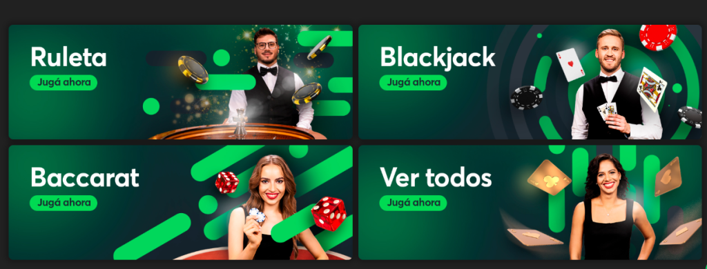 En Sportsbet podrás jugar en la modalidad de casino en vivo, o sea frente a verdaderos crupiers que transmiten desde una sala de casino real. Una experiencia de juego real, como su estuvieras en un casino físico pero desde el lugar que sea. A través de tu computadora o celular.