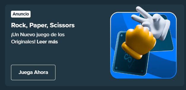 En esta ocasión, tenemos el agrado de comentar que Stake tiene el título original Piedra, papel o tijera, una aventura en la que podés sentir toda la adrenalina y la pasión del clásico más divertido dentro de la plataforma. El sitio recompensa a los jugadores que se atrevan a encarar este nuevo desafío con astucia y valentía. ¡Jugá, divertite y ganá en Stake Argentina!