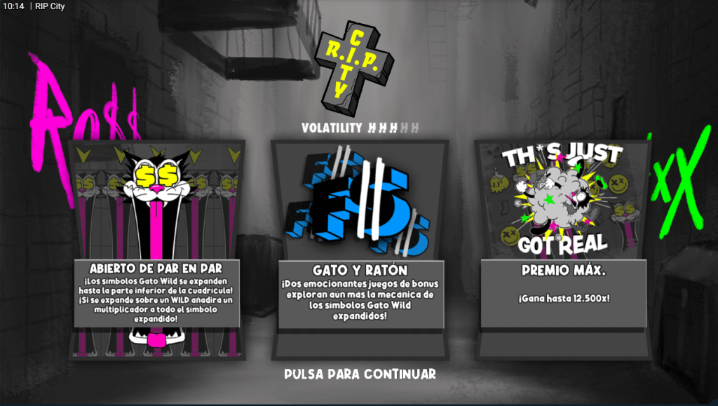 El juego Rip City es un Slot con una aventura callejera fantástica, un diseño colorido y alucinante con interesantes ganancias al alcance de tu mano, del gran proveedor Hacksaw Gaming. ¡Apuesta a ganar en grande con las funcionalidades exclusivas: podés hacerte rico en un pestañeo!