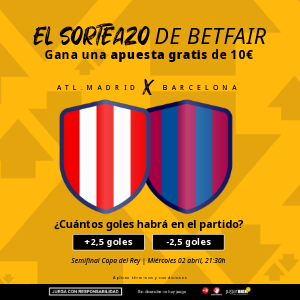 Betfair quiere celebrar por todo lo alto el partidazo de la vuelta de la semifinal de Copa del Rey Atlético de Madrid vs Barcelona y está realizando un Sorteazo en el que tienes que participar. Y es que, la casa de apuestas va a regalar nada menos que 5 freebets de 10€ entre los usuarios que participen en él. ¿Quieres saber cómo? Aquí te lo contamos.
