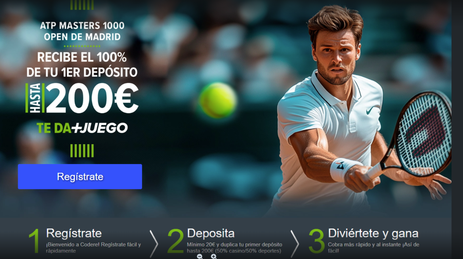 ¿A qué estás esperando? Crea tu cuenta en Codere y aprovecha su bono de bienvenida para apostar a uno de los mejores torneos de tenis del año.