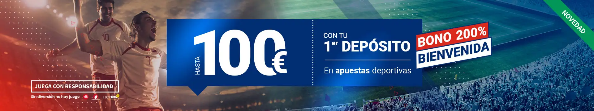 Además de la espectacular oferta de bienvenida para jugar en el casino online con los 4 primeros depósitos, JOKERBET ofrece a sus nuevos usuarios la posibilidad de beneficiarse de un bono de apuestas realmente ventajoso. Gracias a él, bonificarás tu primer depósito al 200% (triplicarás tu saldo), para apostar a cualquier evento deportivo, hasta un máximo de 100€. Es decir, ingresando 50€, te regalan 100€ adicionales con los que disponer de más saldo con el que incrementar tus beneficios.