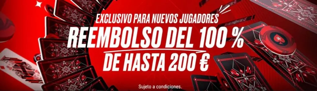 PokerStars se posiciona como la principal sala de póker online a nivel mundial, además de ser una de las principales promotoras de importantes torneos de carácter internacional. Consigue hasta 200€ con el bono reembolso del 100% de Pokerstars.
