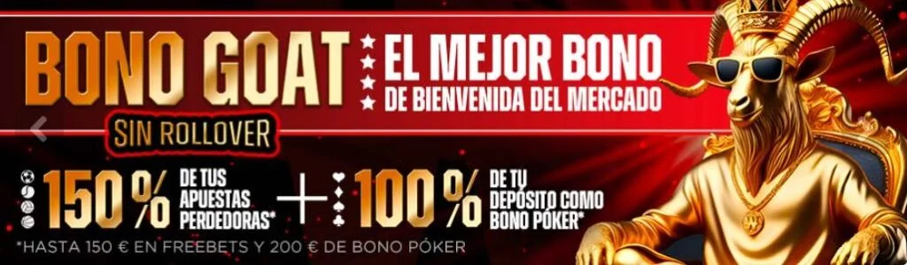 Tienen varias secciones de Torneos de Poker como Expresso, Sunday Surprise, etc… todas ellas son compatibles con su Bono GOAT de bienvenida. Lo venden como ‘El mejor del mercado’ y te ofrecen hasta 200€ de bono para póker con el 100% de tu primer ingreso. En estos momentos no hay bonos sin depósito de poker en Winamax.