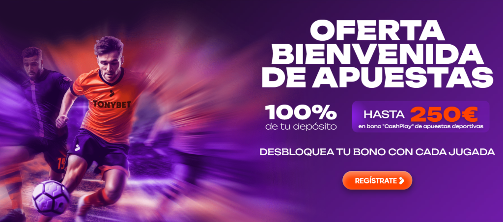 TonyBet se ha consolidado como una de las casas de apuestas más completas en España, y no solo por su impresionante variedad de mercados por partido, sino también por el atractivo de sus promociones para nuevos usuarios. En concreto, su bono de bienvenida “CashPlay”, una oferta mejorada que te permite empezar a apostar con hasta 250€ extra. A continuación, te explicamos todos los detalles para que puedas aprovecharlo al máximo.