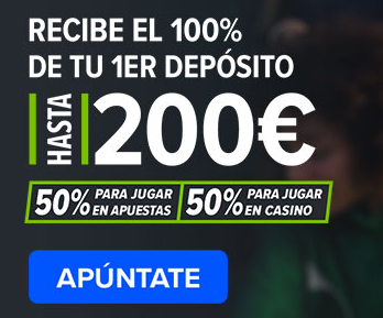 - Realiza tu primer ingreso económico y podrás potenciarlo hasta 200€ (100€ de apuestas y 100€ de casino).