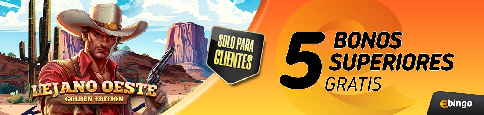 La slot Lejano Oeste Golden Edition acaba de llegar a eBingo y, desde su casino, quieren celebrarlo por todo lo alto. Por eso, han lanzado una promoción que solamente podrás aprovechar hoy (30 de enero) con la que te regalan 5 bonos superiores en los que podrás conseguir grandes premios y que, desde ApuestasFree, te recomendamos que aproveches sí o sí.