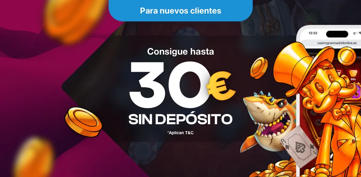 Aunque Gran Madrid Casino cuenta con bonos de bienvenida y bonos de fidelidad, solamente es necesario introducir el código promocional GRATISPIROTS en el caso de que lo que quieras es solicitar el bono sin depósito de 30€ gratis para slots, casino y apuestas deportivas.