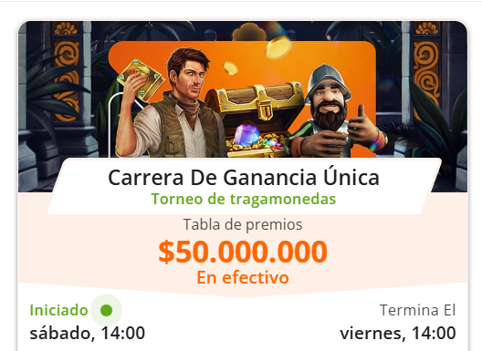 La Bolsa de Premios que está en juego por el Torneo “La Carrera de Ganancia Única” en Betsson es de $50.000.000 ¡Sin requisito! Gana dinero por tu talento y disfruta las recompensas.
