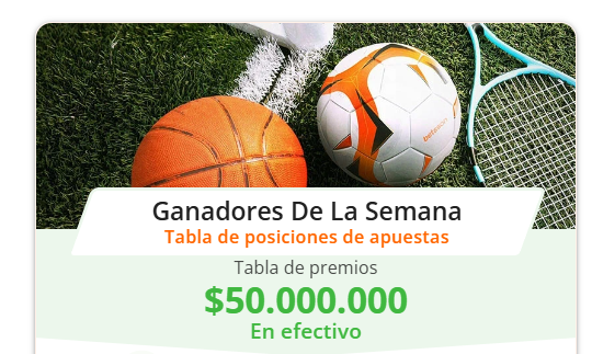 - Apuesta en cualquier mercado deportivo de los 31 deportes seleccionados, con un valor de, por lo menos, $1.000.