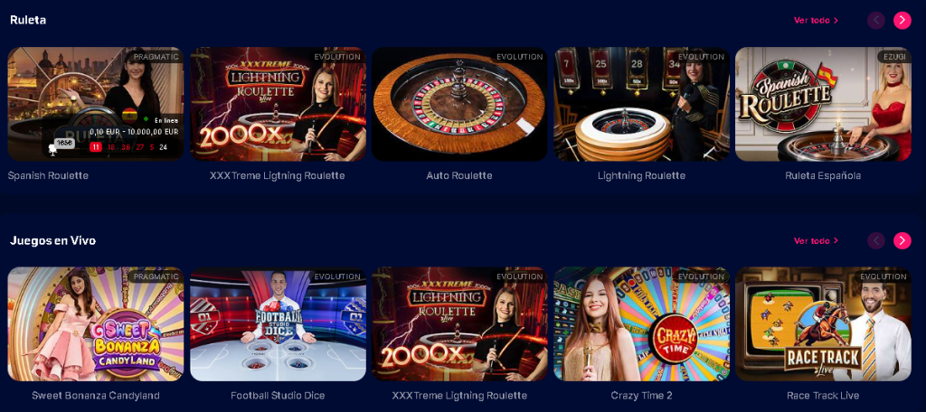 Una experiencia de casino real desde la comodidad de tu hogar o desde el lugar que sea. Hay opciones de ruletas, blackjack y baccarat para disfrutar desde Chile. Incluso puedes interactuar en tiempo real con los crupiers mientras juegas, para hacerlo todavía más divertido.