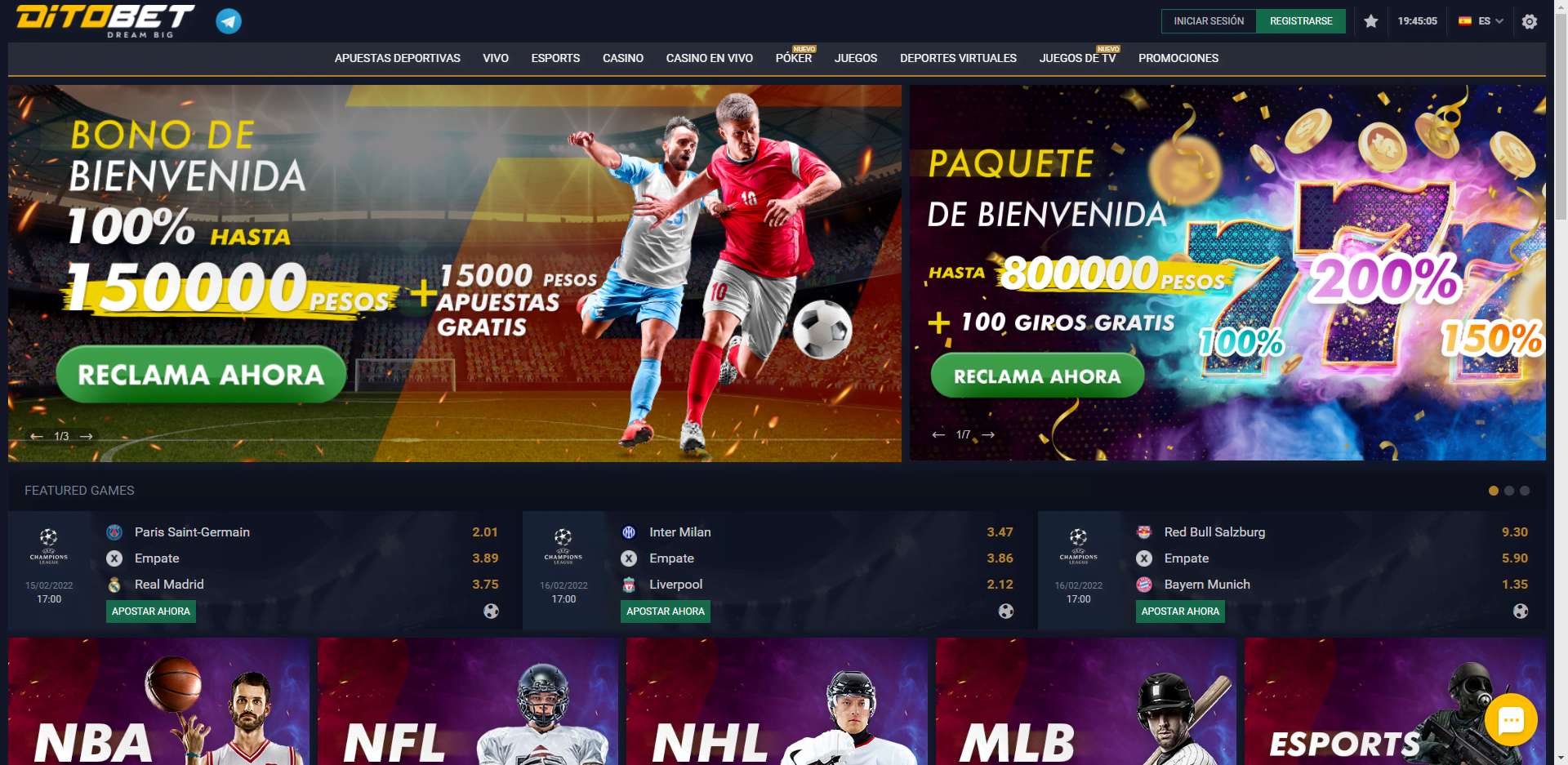 En esta sección de nuestros posteos, vamos a contarte sobre algo más que interesante que puedes encontrar dentro de esta casa. Sabemos que tu deseo es poder saber como retirar dinero dentro de Ditobet, pero para eso tienes que saber muchas más cosas. Por ejemplo, creemos que tienes que tener en cuenta cuáles son las mejores categorías dentro de esta casa para que puedas jugar en ellas y obtener beneficios con las mismas. Te contaremos cuáles son las más recurridas y porque consideramos que así es. Primero, hablaremos sobre las apuestas deportivas. Estas son más que famosas en todo el mundo y seguramente tengas algún deporte favorito. Si es así, no pierdas la chance de apostar aqui. El casino es de lo mejor porque cuenta con grandes proveedores de todas partes del mundo. Juega a las slots y no te lo pierdas nunca querido. Ingresa aqui y elige tu favorita.