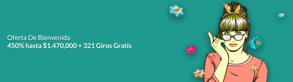 Del primer bono que hablaremos es sobre el bono de bienvenida. Este es un bono muy generoso, te dará un bono del 450% hasta $ 1.470.000 más 321 giros gratis. Los $1.470.000 se dividirá en los primeros 3 depósitos. Para poder acceder a este beneficio tendrás que hacer un depósito mínimo de $ 12.000. Deberás cumplir con un rollover de al menos 40 veces para poder retirar las ganancias de los giros gratis. Los giros gratis son para utilizar en Starburst. Deberás tener en cuenta que hay algunos términos y condiciones en este bono de bienvenida que debes cumplir.
