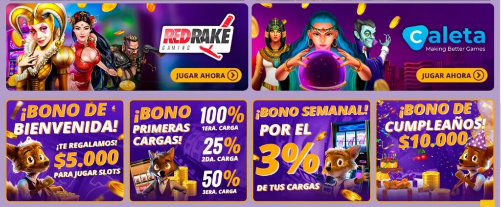 Hay un Bono de Bienvenida de 5.000 CLP sin depósito y también un Bono para cada uno de tus tres primeros depósitos.