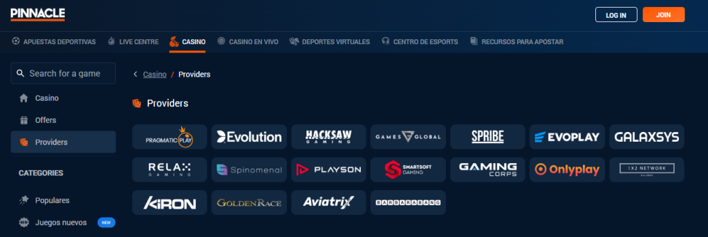 ¿Qué juegos ofrece el casino en vivo de Pinnacle?