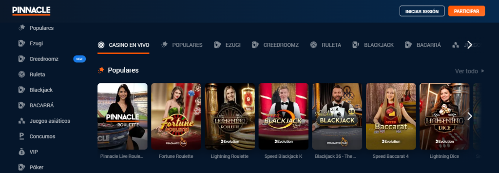 ¿Qué juegos están disponibles en el casino en vivo de Pinnacle?