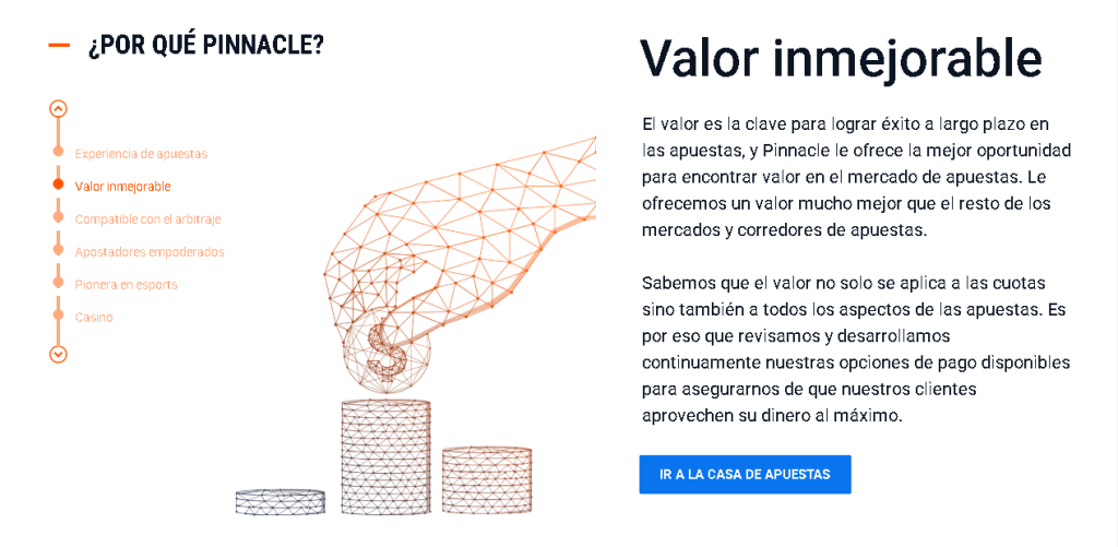 A su vez, Pinnacle revisa y desarrolla continuamente todos los aspectos de las apuestas con el propósito de que los usuarios aprovechen su dinero al máximo.