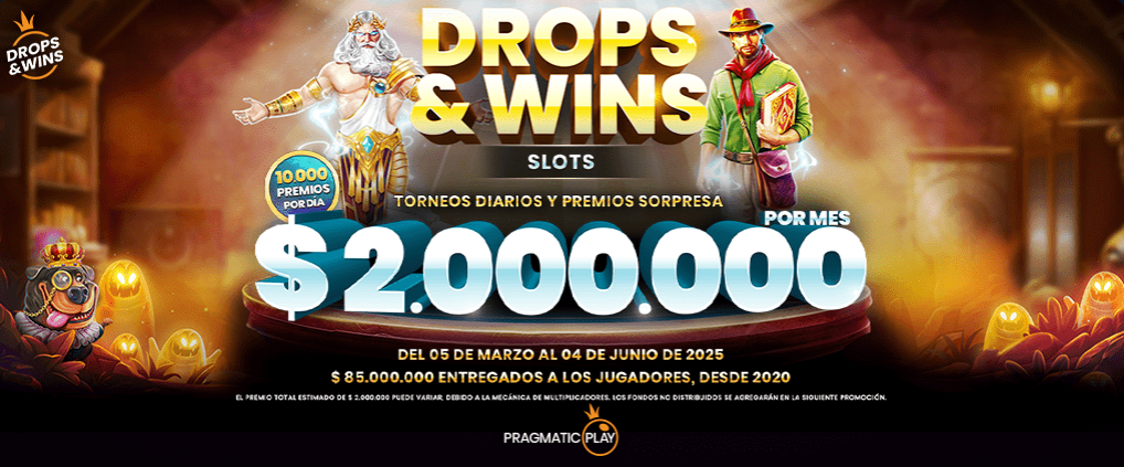 Por supuesto que también hay premios en efectivo, lo que te da fondos para jugar o apostar sin tener que depositar. Drops & Wins tiene un pozo de $2.000.000 al mes, por lo tanto simplemente juega y tendrás muchas opciones de llevarte tu parte.