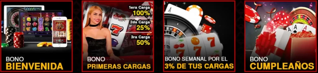 El “Bono de Primeras Cargas” es otra modalidad de promoción que, en este caso, propone hasta $300.000 CLP de beneficio en los tres primeros depósitos de un jugador en el sitio.