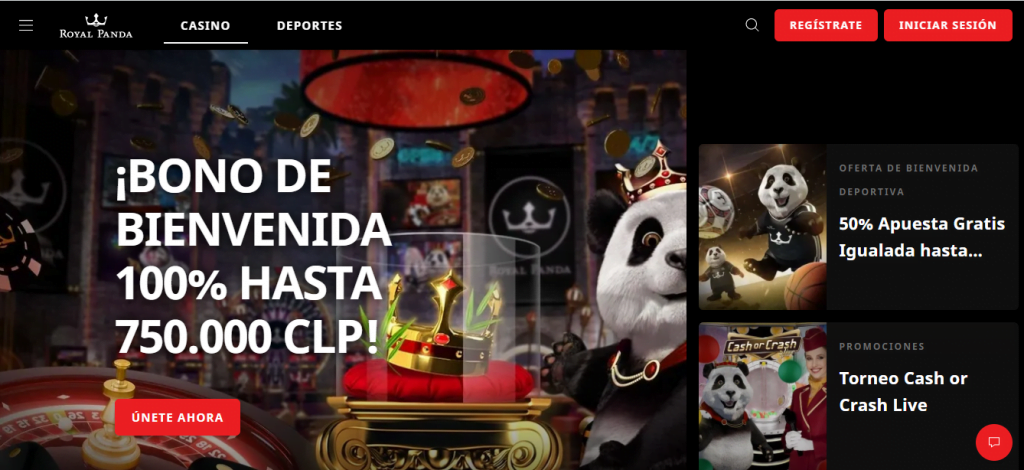 - Bono de Bienvenida de Casino Royal Panda: Si juegas 35 veces el monto de tu primer depósito (rollover) recibirás un Bono del 100% extra hasta $750.000 CLP.