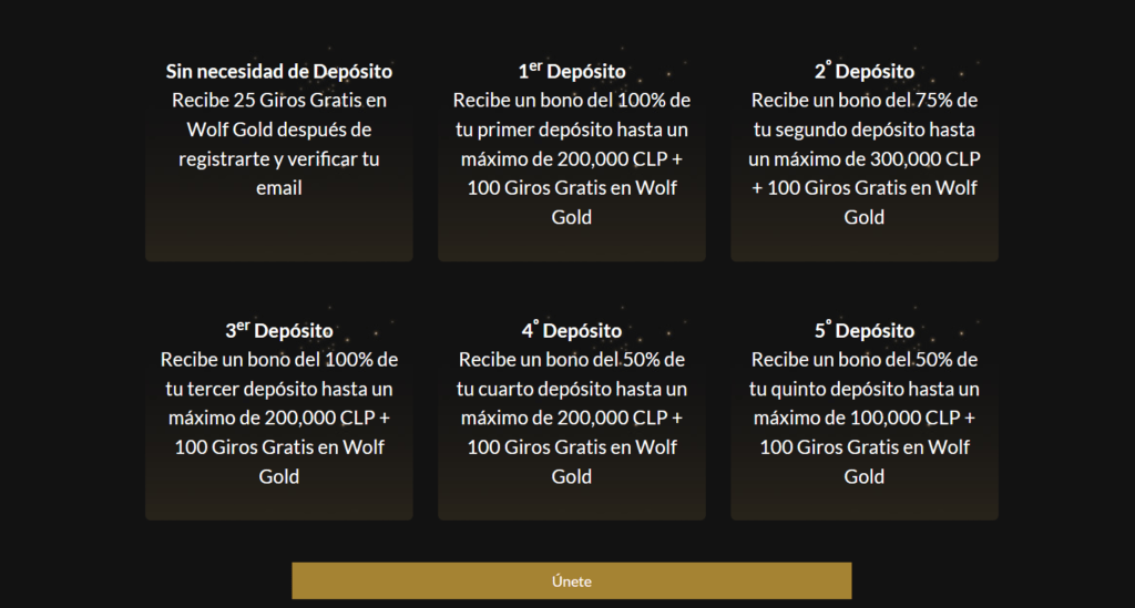Las máquinas tragamonedas tienen un lugar muy destcado dentro de esta página con miles de opciones ambientadas en distintas temáticas, diferentes funciones y premios realmente estupendos. Entonces, los giros que obtengas con el bono de Royal Winner para casino podrás utilizarlos en el juego Wolf Gold, una de las slots más populares del sitio.