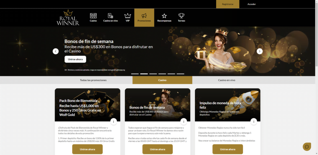 Dentro de este posteo, conoceremos algunas de las características con las que cuenta esta casa actualmente para sus usuarios. La misma se nos presenta con todas sus promociones que son espectaculares y nos cuentan un poco de que trata su página. En principio, observamos que la misma es una empresa que nos ofrece gran variedad de categorías para que todos puedan jugar a lo que más gusten. También hacen muchísimo hincapié en lo que tiene que ver con la seguridad, algo que es sumamente importante dentro de las casas de apuestas en la actualidad. Poder jugar seguros en una página web totalmente desarrollada es algo que sin dudas tenemos que tener en cuenta. Desde esta perspectiva, también hemos podido observar que RoyalWinner está al pie del cañón con sus usuarios dándoles todo como el bono sin deposito. De este mismo hablaremos más adelante, asique síguenos leyendo ahora mismo para saber.