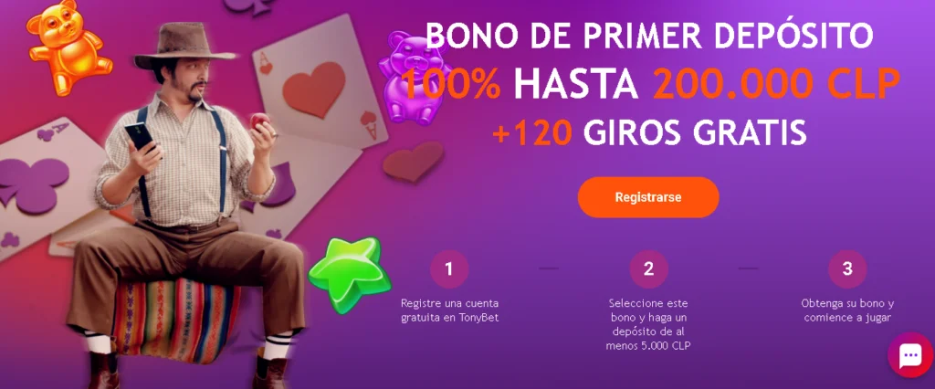 Otra de las imperdibles promociones de TonyBet es su Bono de Bienvenida destinado al Casino. En este caso, el Casino duplica tu primer depósito hasta un tope de $200.000 CLP. Pero eso no es todo. Además, la Oferta incluye 120 Giros Gratis para el Slot “Cowboys Gold”. Si deseas adquirir semejante beneficio, tu ingreso de dinero inicial no puede ser inferior a $5.000 CLP.