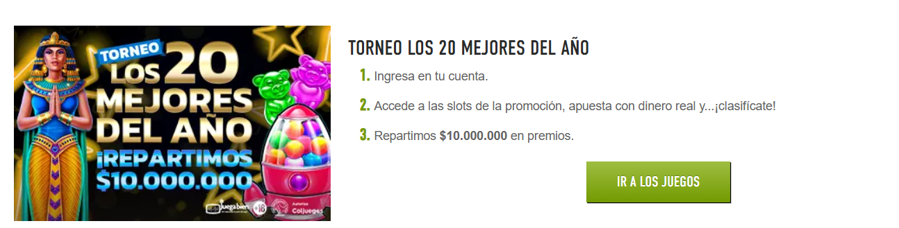 Inscríbete en la bonificación desde la pestaña promocional de “Casino” al iniciar sesión en tu cuenta de Codere Colombia. Una vez inscripto, solo tienes que comenzar a jugar en los juegos seleccionados por los torneos y liderar las clasificaciones o, simplemente, ser el afortunado que gane un premio aleatorio.