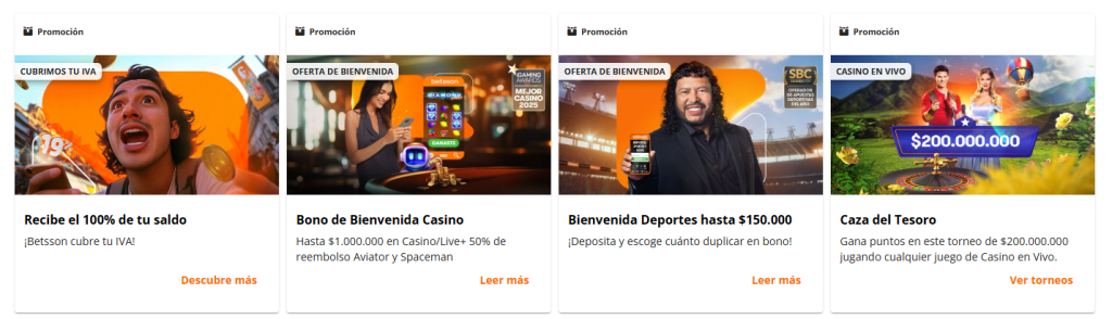 ¡Cada día es una oportunidad dorada al ser parte de Betsson en Colombia! Ingresa cada cierto tiempo a la pestaña “Promociones” dentro de tu cuenta y échale un vistazo a las mejores Ofertas de la Casa.
