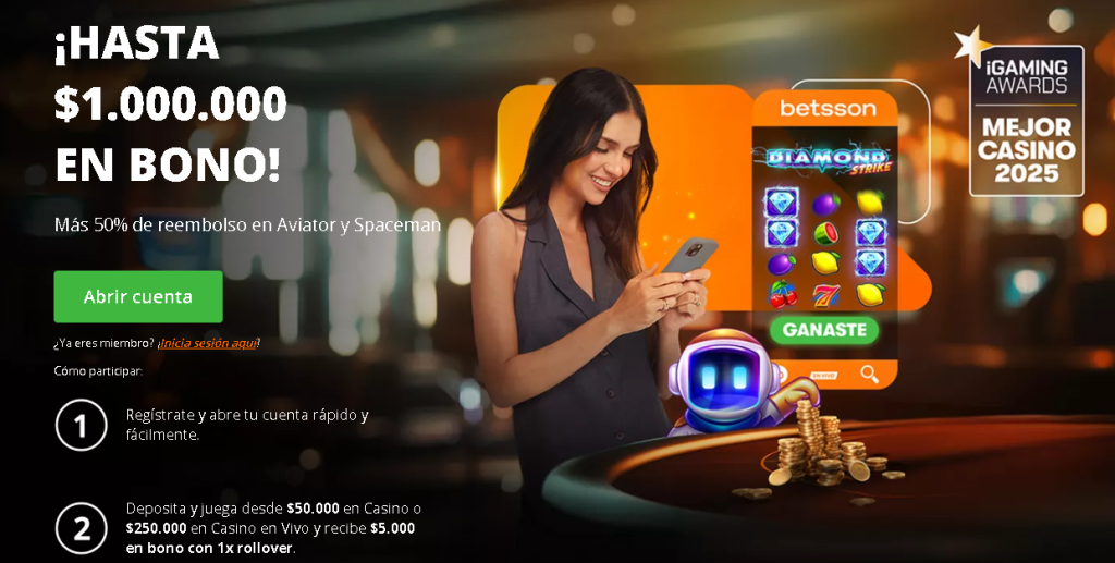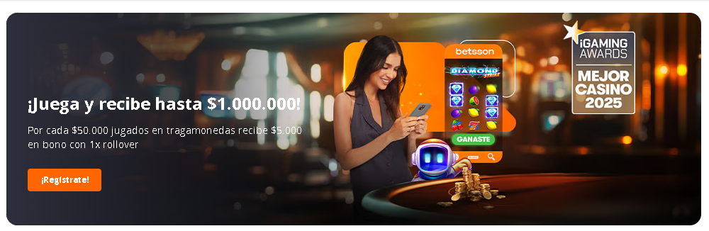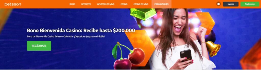 ¿Eres amante de los juegos de casino? Hoy traemos para ti una increíble oportunidad para que puedas obtener grandes beneficios. Es por eso que hoy traemos para ti el nuevo bono para casino de Betsson, con el que podrás obtener hasta $1.000.000 COP para utilizar en los mejores títulos dentro del casino en línea de este fabuloso sitio. ¿Te lo piensas perder? ¡No dejes que eso ocurra y aprovéchalo!