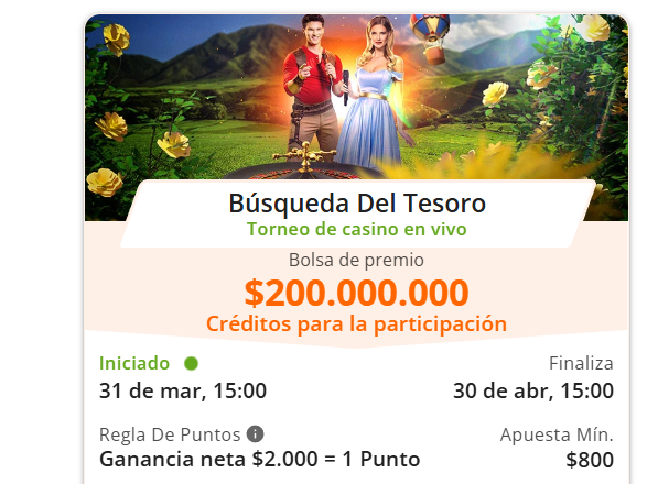 En esta ocasión queremos invitarte a participar del Torneo La Caza del Tesoro de Betsson y así ponerte en carrera por la bolsa de premios de $200.000.000. Además, solo necesitarás jugar en los juegos seleccionados por el sitio de Betsson Colombia para ser parte de la Promoción. ¡Juega ya en Betsson y gana recompensas!