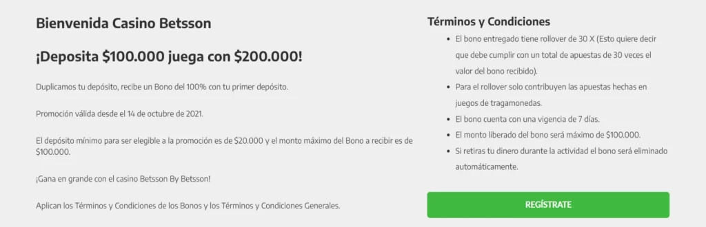No olvidés consultar siempre los Términos y Condiciones para cada oferta de la que hagas uso, en este y cualquier otro sitio de apuestas. Recordá que aquí se estipulan reglas y requisitos que no encontrarás de otra manera, y que podrían poner en riesgo tus bonos. Para el Bono de Betsson, estos son los términos: