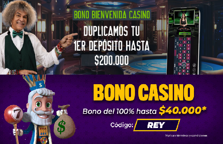 - Bono de Bienvenida para Casino Rushbet: La oferta de Bienvenida para Casino de Rushbet consiste en un Bono exclusivo con el código promocional “REY”, por el que podrás recibir un 100% extra de saldo hasta $40.000 COL para usar en los mejores juegos del sitio.