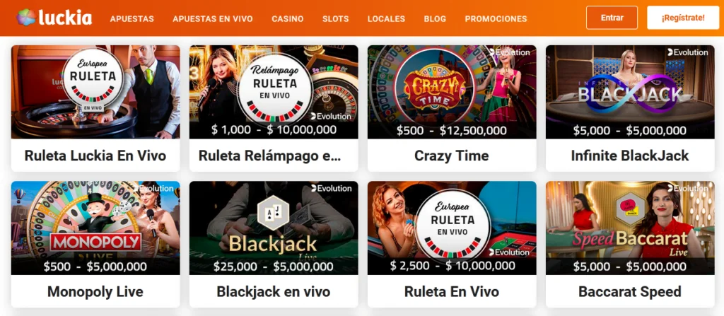 Luckia llega a Colombia con la mejor propuesta que hayas visto para disfrutar del casino en línea. Una cantidad infinita de juegos, las mejores slots, ruletas en vivo con croupier las 24 horas, blackajack, baccarat, póker y mucho más. ¿Qué estás esperando para registrarte?. Si lo haces ahora, Luckia te da la bienvenida con un bono de hasta $250.000 COP para que puedas aprovechar en el casino en vivo. Es un oportunidad única, ¡animate!.