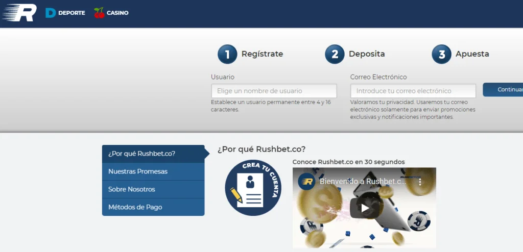 - Crear una cuenta. Primerísimo en la lista, estará que seas un usuario Registrado en Rushbet Colombia.