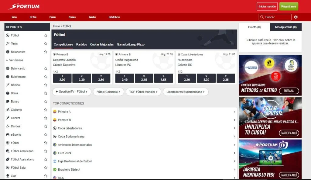 Aquí se procesan miles y miles de apuestas de fútbol por día, entre las ligas locales de Colombia y las ligas internacionales más reconocidas. Además, encontrarás encuentros de balonmano, béisbol, billar, boxeo, ciclismo, fútbol americano, golf, hockey hielo, MMA, rugby, tenis de mesa, voleibol y más. Todos los días hay cuotas mejoradas en eventos seleccionados.
